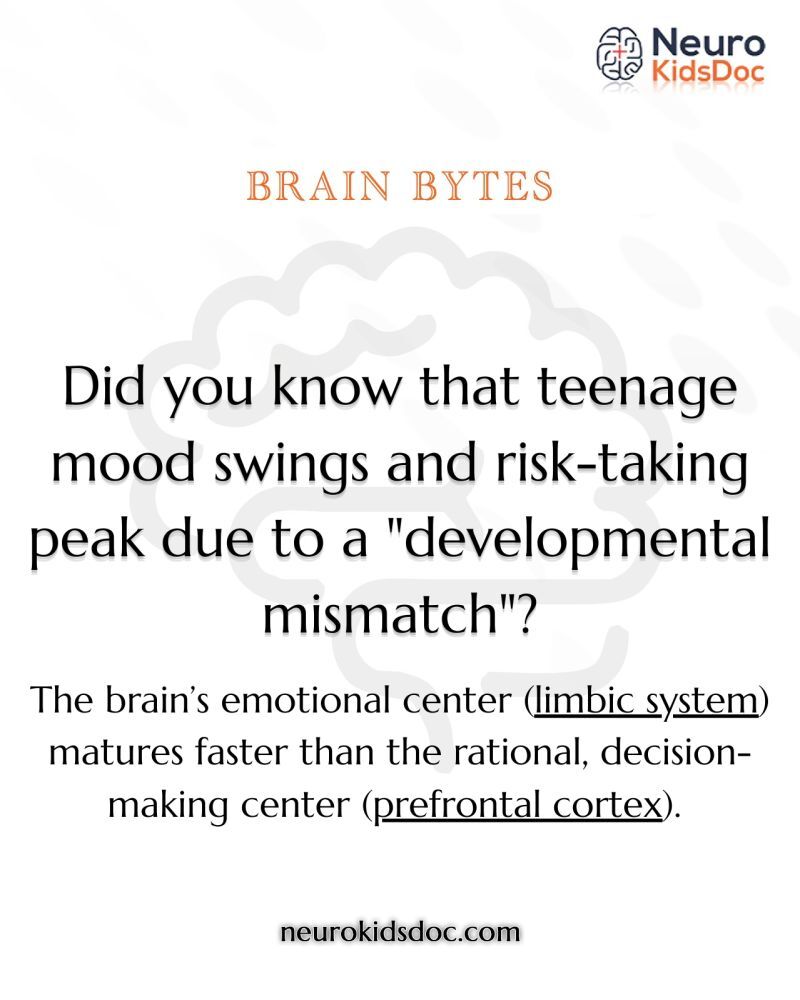 During adolescence, the brain’s emotional and reward center (the limbic system) matures earlier than the prefrontal cortex, which is responsible for judgment, impulse control, and long-term decision-making.